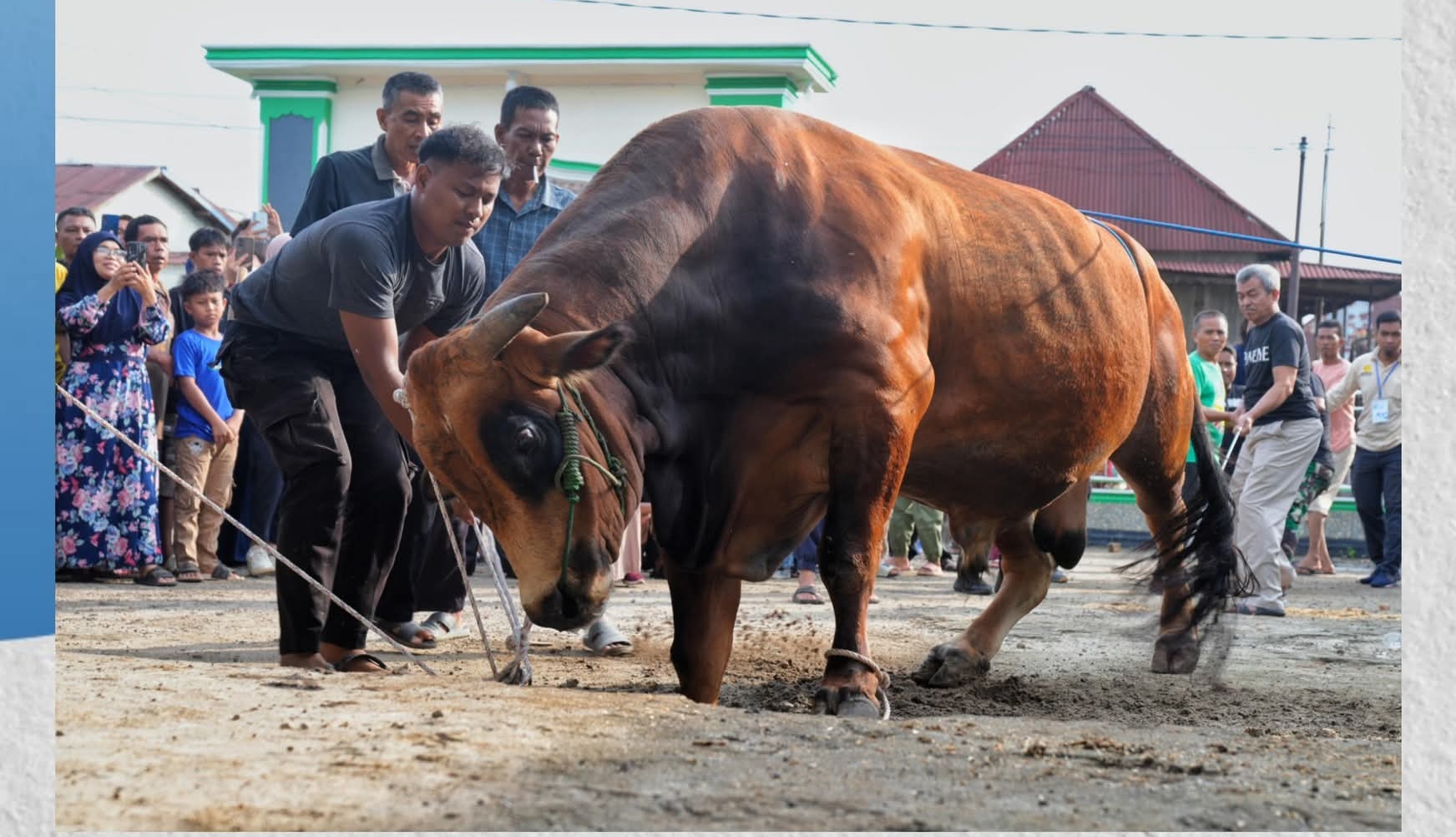 OGANILIR Begawan Indonesia – Bupati Ogan Ilir Panca Wijaya Akbar SH MSi Didampingi Kepala Perangkat Daerah Ogan Ilir Menyerahkan Sapi Qurban dari Presiden Republik Indonesia Kepada Pengurus Masjid Al Kubro Indralaya. Sabtu (07/06/2025) Bertempat di RT 02 Kelurahan Indralaya Mulya Kecamatan Indralaya.