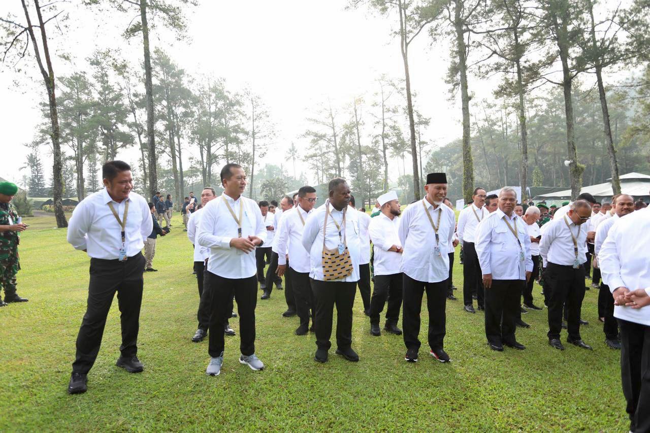 Gubernur Sumatera Selatan (Sumsel) H Herman Deru di hari ketiga retreat ini tetap terlihat bugar dan fokus mengikuti berbagai agenda kegiatan. Bahkan HD terlihat hadir berbaur dengan sejumlah kepala daerah lainnya saat olahraga pagi yang juga dihadiri langsung oleh Menteri Dalam Negeri (Mendagri) Tito Karnavian.