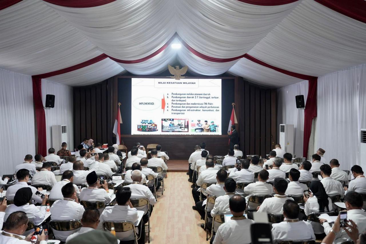 Setelah sesi ibadah, Gubernur Sumsel Herman Deru juga nampak serius mendengarkan paparan pada sesi materi wawasan nusantara yang akan diberikan oleh Lembaga Ketahanan Nasional (Lemhannas).